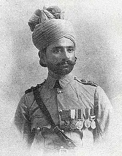 He was the first British Indian subject to earn the Victoria Cross, after members of the British Indian Army became eligible for the Victoria Cross in 1911, replacing the Indian Order of Merit first class.[3]