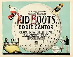 Kid Boots is a 1926 American silent feature comedy film directed by Frank Tuttle, and based on the 1923 musical written by William Anthony McGuire and Otto Harbach.[1] This was entertainer Eddie Cantor's first film. A print is preserved at the Library of Congress.[2][3][4][5]
