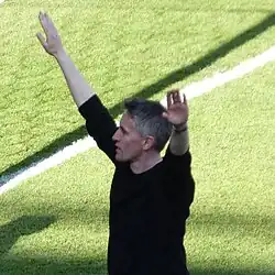 During the 2022–23 season, McKenna was awarded the EFL League One Manager of the Month award for March 2023 as his side maintained their automatic promotion push.[19] On 29 April 2023, Ipswich secured promotion to the EFL Championship after beating Exeter City 6–0 at home.[20] He was later awarded Manager of the Month for April.[21] Ipswich finished the season in second place in League One to gain automatic promotion to the EFL Championship, following a 19-game unbeaten run. At the end of the 2022–23 season, McKenna signed a new four-year contract, extending his stay at Portman Road until 2027.[22]