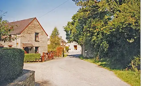 The station was formally opened on 31 August 1886, although services began a day later, by the Whitland and Cardigan Railway.[2] It was situated on the east side of a minor road. It was going to be called Cilgerran but the GWR preferred the former spelling of the nearby village, Kilgerran. Opposite the platform was a loop with a nearby goods yard, comprising two sidings. It had a stone-built goods shed and a cattle dock. It was downgraded to an unstaffed halt in September 1956, thus the suffix 'Halt' was added to its name.[3] It closed to passengers on 10 September 1962[4] and closed to goods on 27 May 1963. The goods yard remained open as a non rail connected coal depot until 3 April 1965.[5]