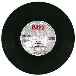 "Killer" is a song by the American hard rock band Kiss. Featured on their 1982 album, Creatures of the Night, the song was released as an A-side single in the United Kingdom. Although "I Love It Loud" was an A-side single in the United States, it would be relegated to the B-side in the UK.[1] It was the first song Vinnie Vincent and Gene Simmons wrote together after the two had met.[2] In addition to not being able to chart at all, Kiss has never performed the song live and it has only been released as a single and on all issues of the Creatures of the Night album (the song was switched places with "Saint and Sinner" on the 1985 reissue).