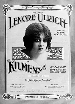 Kilmeny is a surviving 1915 American comedy silent film directed by Oscar Apfel and written by Louise B. Stanwood. The film stars Lenore Ulric, William Desmond, Doris Baker, Herbert Standing, Howard Davies and Gordon Griffith. The film was released July 22, 1915, by Paramount Pictures.[1][2]