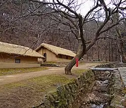 Buildings at the Paeksong Revolutionary Site near Pyongsong, to which many students from Kim Il Sung University were moved during the Korean War, for reasons of safety.
