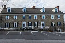 The three original buildings that were listed on the National Register were the "Sign of the Bear" tavern (1768), Chrisman grist mill (1796, now post office), and French Creek Boarding School (1787, 1813). A boundary increase in 1987 expanded the district to include a variety of vernacular farmhouses, barns and other outbuildings, a grange hall, a former Quaker meetinghouse, a frame milk receiving station, and railroad station. The contributing structures are a dam and stone arch bridge.[3]