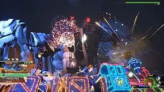 Sora faces Heartless, Nobodies, and Unversed in the game,[25] with new variants of these enemy types appearing.[21] In addition to these traditional "smaller" enemies, the player faces giant bosses, which give "Sora greater freedom of movement and room to experiment with attacks—including the new theme-park-ride summon attacks,"[13] known as "Attraction Flow".[26] These attacks are inspired by the Disney Parks attractions Mad Tea Party, Big Thunder Mountain Railroad, Buzz Lightyear Astro Blasters,[24] and Grizzly River Run,[27] and generic pirate ship and carousel attractions;[24][28] these attacks draw visual inspiration from Disney Parks' Main Street Electrical Parade.[24] Sora also has the ability to jump on certain enemies, such as ones shaped like a vehicle.[18] Regarding traversal, Nomura noted the new mechanic, called "Athletic Flow" in Japanese, was refined from the Flowmotion mechanic from Dream Drop Distance, which players felt was "a little too free... and it was kind of hard to control on their end."[29] "Athletic Flow" allows the player to utilize the environment to access previously unreachable areas.[30] Co-director Tai Yasue stated this mechanic was created "to try something new" and "radically change the gameplay" for the Hercules world, which led to its use in the other worlds. As a result, each world was able to have "more height, scale and sense of discovery."[31]