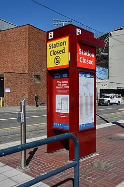On March 1, 2020, TriMet closed the station, alongside the stations at Pioneer Place mall, as part of a pilot program to improve MAX journey times through Downtown Portland.[5][6] While the station was supposed to be closed for only a year, it has remained closed since.[7]