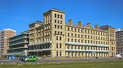 Kings House was built between 1871 and 1874 by James Knowles; originally it was built as seven mansion blocks, and was based on the style of Osborne House on the Isle of Wight.[2][3][4] It then became a hotel, called the Prince's Hotel, before being used by the Royal Navy during the Second World War.[4][5] In 1948, the building was bought by SEEBOARD to use as the company headquarters, before being bought by Brighton and Hove City Council in 1996.[5][3] In 1974, the building became a Grade II listed building.[5][6]