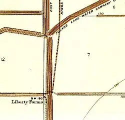 The Kings Lake Shore Railroad was a 19.4-mile (31.2 km) common carrier railroad that operated in Kings County, California from 1910 to 1934. The line primarily hauled agricultural products that grew in this region of the San Joaquin Valley. The line originated with a connection with the Atchison, Topeka and Santa Fe Railway at Corcoran and then ran south-southwest to its terminus at Liberty Farms.
