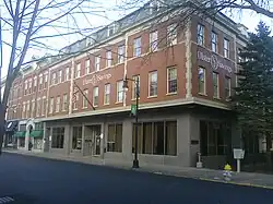 - Kirkland Hotel, 2 Main Street. One of the district's newest contributing properties, this 1899 Tudorbethan hotel is a rare example of a wood-frame urban hotel. After almost three decades of vacancy, it was recently restored for mixed commercial and residential use by a local nonprofit group.[32]