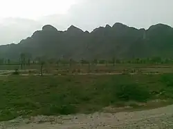 The Kirana Hills is an extensive rocky mountain range located in the Sargodha District, and about 80 mi (130 km) in distance from the Salt Range.[12][13] In 1913, British geologists conducted extensive investigations on the rock formations in the Kirana Hills, which are different from the rest of its parent mountains ranges; the rocks are noticeably black in formation.[13]