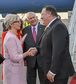 ![]() Kauppi greets Mike Pompeo in Helsinki in 2018 | |