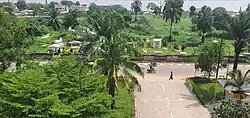 Other landmarks include: L'Hôtel des chutes, Le Voyageur, Hellénique ainsi que Psistaria, l'Hôtel Congo Palace, l'Hôtel Boyoma, l'Hôtel Kisanganian and L'Hôtel Palm Beach.[88] Place de la Femme which was completed in 1934 as a dedication to Boyomaise women, the landmark One of the most revered religious leaders Reverend Father Gabriel Grison was buried at the Mission St. Gabriel in Kisangani and has monument dedicated to him on Monseigneur Grison Avenue. Mobutus' residential home on route de Lubutu, Place des Martyrs that held the Lumumba Square until 1967, the controversial Central Public Fountain that anchors the downtown park was installed by the distraction of the popular monument of Stanley and its surrounding structures are but a few notable examples of 20th-century architecture.[89]