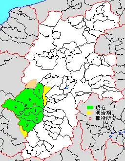Historically, the district was once known as Nishichikuma District (西筑摩郡, Nishichikuma-gun) until May 1, 1968.
