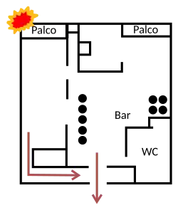Brazilian police stated that the fire began when the band Gurizada Fandangueira[11] ignited a pyrotechnic device (similar to a signaling flare) while performing on stage.[12][13] The pyrotechnics accidentally ignited flammable acoustic foam in the ceiling.[14][15] According to the authorities, other reasons for the high death toll include the lack of emergency exits (the only access in and out of the building was the front door) and the fact that the number of people inside exceeded the maximum capacity by hundreds.[16]