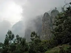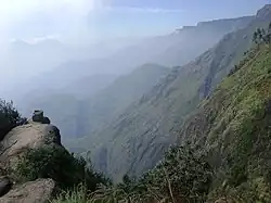 There are several well established side roads and other intersecting minor trails which branch off from the Kodaikanal–Munnar Road. Most of these show as "other trails" on the 1959 Army map.[21] These intersections either go north to Upper Palani Hills villages or go south, dropping sharply down the south facing escarpment to hill villages en route and towns on the plains up to 1,800 m (5,900 ft) below. The Ciff Trail provides an alternate east–west route between Berijam Lake and the Kerala Forest Bungalow. There are over 40 recognized hiking routes from Kodaikanal using the Munnar road and these other trails.[25]