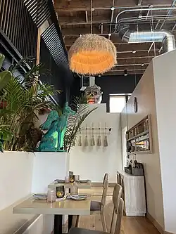 Koko's serves modern Latin American,[4] Mexican,[5][6] and Salvadoran cuisine.[7] The menu includes burritos and tostadas,[8] steak tacos, poblano-cashew enchiladas, fried plantains,[9] and cocktails,[5] including mojitos[8] as well as spicy[10] and strawberry margaritas.[11][12][13] The restaurant has also served a "Mexican poke bowl" with yellowfin tuna, mango, and edamame, as well as carne asada and chicken flautas,[14] tortilla soup,[1] guacamole, and a cucumber-cilantro margarita.[12] The Morati is a martini with mezcal, muddled blueberries, lime juice, and organic agave nectar.[8] Mexican hot chocolate is among drink options on the brunch menu.[9]