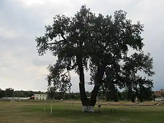 Construction of the stadium and sports grounds began in 1951. Stadium is located in the center of the village. A 750 year old oak tree is located near the stadium.[1] Stadium was completed in 1952. Kolhospnyk sports society Pylyp Zhuravel initiated the construction. In 1973 the stadium was expanded with the addition of a central stand. In 2003 a new central stand was completed. During 2005 a minifootball field was added. During 2008-09 stadium was renovated and plastic seating for 1,500 were installed.[2] During 2021 a multi functional sports field was added.