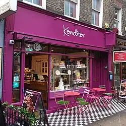 Konditor (formerly "Konditor & Cook"[1]) is a made-to-order cake bakery specialising in personalised celebration cakes in the United Kingdom. "Konditor" is the German word for confectioner or pastry chef. The company was founded in 1993 by Gerhard Jenne[2] as "Konditor & Cook" but changed its name to "Konditor" in 2018. The first shop is located at 22 Cornwall Rd, SE1 8TW on London's South Bank.[3][4] There are also branches near Chancery Lane and Mansion House, as well as a delivery service.