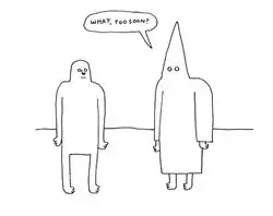 In the summer of 2009, Vazquez responded to The New Yorker cartoonist Farley Katz's poking fun at Das Racist for "Combination Pizza Hut and Taco Bell"[29] by challenging Katz to a "cartoon-off".[30] Katz accepted, and the competition consisted of the two each drawing three cartoons: a day in the life of a rapper, a day in the life of a cartoonist, and a futuristic utopia where racism does not exist.[31] Vazquez submitted the same drawing of domestic slackerdom for the first two, and a person in a Ku Klux Klan hood asking, "What, too soon?" for the third.[32] Rob Harvilla of the Village Voice declared Vazquez the winner, saying he "destroyed" Katz,[33] and Vazquez was widely considered to have won the cartoon-off.[32]