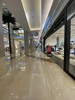 The mall comprises six floors, the interior design of which is followed by mosaics motifs in the palaces of Morocco.[5] There are 13 anchor tenants: Sogo, Transmart (formerly Carrefour, until their departure from Indonesia in 2020), XXI, Don Don Donki, Amazing Caribbean, Chipmunk, Paperclip, Celebrity Fitness, Wall Street Institute, Muji, Informa, Toys Kingdom, Electronic Solution, Eat & Eat, azko, and hundreds of other specialty stores.