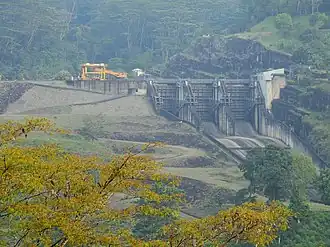 ![]() Right bank of the dam, with spillways | |