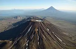 The Kuril-Kamchatka island arc contains more than 60 recently active volcanoes.[2]: 383  The massif of the Krasheninnikov volcano contains two overlapping stratovolcanoes made up of three edifices, with the most recent historic partial cone off the northern cone being called the mid-North cone.[2]: 395  According to the Smithsonian Institution's Global Volcanism Program, the volcano's last eruption before 2025 was dated to 1550 using tephrochronology.[1]