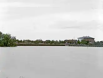 The Krokhino Posad was situated on the mail path from Belozersk to Vytegra, in 600 versts to Novgorod, in 413 versts by water to the falling of Sheksna River into Volga River near the Rybinsk Wharf. Posad owned lands on the banks of Sheksna River that spanned for 3 versts from Beloozero. The width of the river in these places was 80 to 120 sazhens. The depth was from 4 to 13 quarters. From April to October ships were sailing on the river. On the Posad territory Troitskaya, Kargulka, Mysluga, Gorbovka, Dmitrovka, Nikol'skaya and Borisohlebskaya tributaries were falling into Sheksna River. Bridges were thrown through Troitskaya, Kargulka, Mysluga and Nikol’skaya. There were two acting crossings through Sheksna River – horse and foot crossings.[3]