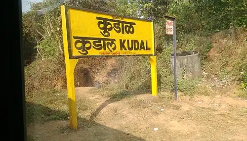 Kudal railway station is a train station near the town of Kudal in the Indian state of Maharashtra. Kudal station lies on the Konkan Railway zone of Indian Railways that runs along the west coast of India. Kudal is an important station in the Konkan region with several trains stopping here daily. 39 trains halt at this station. Premium trains like Tejas Express stops here which runs between Mumbai and Karmali. There are daily trains to Mumbai like Konkan Kanya Express, Tutari Express and Mandovi Express. Train to the national capital Delhi is available on Monday and Sunday which is 22413 Mao-Nzm Rajdhani Express. Also, trains stopping at all stations like Diva-Sawantwadi Passenger and Ratnagiri–Madgaon Passenger halt here. Waiting rooms are available at pf 1. Ticket counter is present at pf 1.