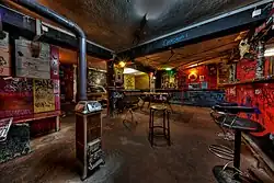 From international alternative and subcultural concerts to readings, film screenings and political talks, KuZeB's cultural programme is diverse. Two stages with bars, a cinema, a hackerspace, a freeshop, an infoshop, sewing, printing and painting studios, a wood and metal workshop, a multi-purpose hall with a half-pipe and fitness area, a rehearsal room for bands, a large garden and several storage rooms are now part of the autonomous centre where people can let off steam or engage in various activities.[14]