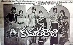 Kumara Raja is a 1978 Indian Telugu-language action film directed by P. Sambasiva Rao. The film stars Krishna, Jaya Prada, Satyanarayana, Jayanti and Latha. Krishna enacted triple roles[4] of a wronged businessman, Rajasekhar and his estranged twin sons — Kumar and Raja. The film has musical score by K. V. Mahadevan. The film is a remake of the 1978 Kannada movie Shankar Guru.[5]