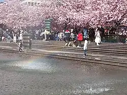 In August 1998, a total number of 63 Sakura trees ("Japanese cherry") were planted; each spring when they all blossom is an experience of beauty and scent in the park. Additionally, city architect Alexander Wolodarski commissioned artist Sivert Lindblom to design the large bronze urns now lined up along the new rectangular fountain. Lindblom has also furnished the small square Blasieholmstorg just east of the park with Byzantine horses.