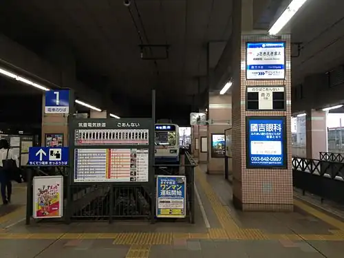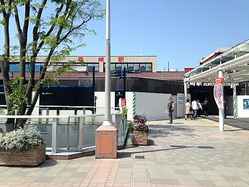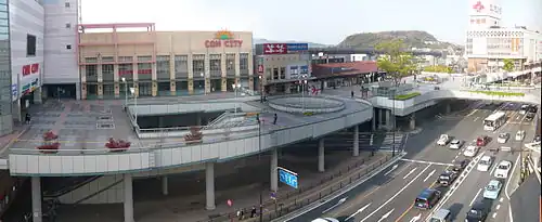 Kurosaki Station (黒崎駅) is a railway station in Yahatanishi-ku, Kitakyushu serving Kagoshima Main Line, Fukuhoku Yutaka Line and Chikuhō Electric Railroad Line. It was first opened in 1891.[1] Express trains, including the Sonic, stop here.