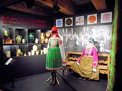 Exhibits related to the material and spiritual culture of Kurpie Białe can be found in various collections, including the Regional Museum in Pułtusk, the Museum of Kurpie Culture in Ostrołęka,[129][130] the Mazovian Museum in Płock,[131][132] the Ethnographic Museum of Kraków,[133][134] the Ethnographic Museum in Toruń,[135] and the Polish Paper-Cutting Museum (under organization)[136] linked to the Konstancin Cultural Center,[66] as well as local educational institutions and memory rooms.[137]