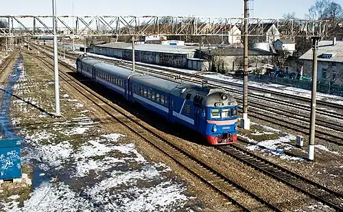 Kutuzovo-Novoye is three kilometres from Kaliningrad North railway station; and nine from Guryevsk-Tsentralny railway station, on the line to Sovetsk, and six from platform 7 km on the line to Zelenogradsk.[1] It handles both cargo and passengers, with Elektrichka suburban commuter trains stopping on their journeys between Kaliningrad South railway station and the stations of Guryevsk-Novoye, Zelenogradsk-Novoye, Pionersky Kurort, and Sovetsk. Svetlogorsk and Slavyansky can also be reached by direct train.[2]
