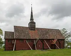 The earliest existing historical records of the church date back to the year 1400, but the stave church was probably built during the early-14th century. The church is a single-nave church of the "Møre"-type, characterized by central posts in the external wall and crossbeams. The small nave measures only 16 by 7.5 metres (52 by 25 ft) and the choir is only 7 by 7.5 metres (23 by 25 ft), making it one of the smallest stave churches in existence. The church was rebuilt in 1633 and during this renovation the front door was moved from the nave's west side to the south side. Also during this renovation, the old choir was torn down and rebuilt in a timber-framed construction rather than the historic stave construction. In 1648, the tower on the roof was repaired. From 1661 to 1663, a church porch was constructed. A sacristy was built around 1689 as well. In 1776, the church was renovated again. In 1810, the tower on the roof was again repaired.[4][5][6]