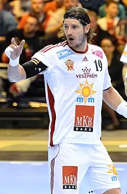 He has represented Hungary from the youngest age group onward. He won a bronze medal in the Youth European Championship in 1997 and in the Junior European Championship 1998, and was crowned champion in the Youth European Championship in 1999.[10] He made his full international debut in 1999 and participated in the 1999 World Championship. He played in a further six World Championships (2003, 2007, 2009, 2013, 2017, 2019) and four European Championships (2004, 2006, 2008, 2016). His greatest success at the international level is his fourth place at both the 2004 Olympic Games in Athens and 2012 Olympic Games in London.[11] He captained the national team between 2004 and 2009, and at the 2016 European and the 2017 World Championship.