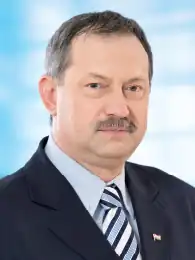 László Szászfalvi (born 11 January 1961)[1] is a Hungarian Calvinist pastor, theologian and politician, Member of Parliament for Marcali from 1998 to 2014, then for Barcs since 2014. He served as Secretary of State for Churches, Minorities and Civil Affairs between 2010 and 2012. He also served as mayor of Csurgó from 1990 to 2003 and from 2006 to 2010.[2]