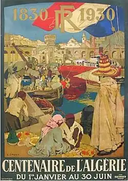 Five years later, he designed the poster commemorating one-hundred years of French rule in Algeria.[1] Thirty-thousand copies were made and distributed worldwide. This was followed by several more poster designs, for shipping companies in the tourist trade.