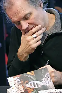 ![]() Pierre Bordage signing copies of his book at the Paris Book Fair in 2011. | |