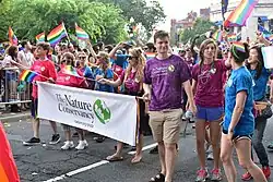 In the District of Columbia, lesbian, gay, bisexual, and transgender (LGBTQ) people enjoy the same rights as non-LGBTQ people. Along with the rest of the country, the District of Columbia recognizes and allows same-sex marriages.[1] The percentage of same-sex households in the District of Columbia in 2008 was at 1.8%, the highest in the nation.[1] This number had grown to 4.2% by early 2015.[2]