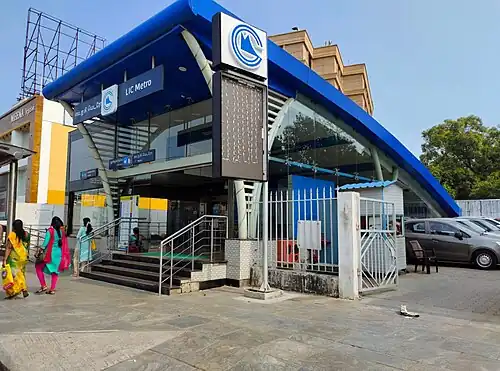 LIC is an underground metro station on the North-South Corridor of the Blue Line of Chennai Metro in Chennai, India. This station serves the neighbourhoods of Egmore and Royapettah. The station is named so because of the presence of the LIC Building, the city's first skyscraper, in the vicinity. The station was opened for public on 10 February 2019. However, some portions of the construction work remains incomplete on the date of inauguration.[1]