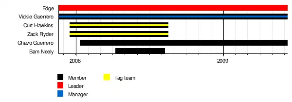 | Members | Edge (leader) Vickie Guerrero Chavo Guerrero Curt Hawkins Zack Ryder Bam Neely |