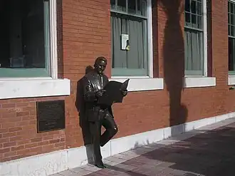 Statue of former editor Roland Manteiga reading La Gaceta, Centro Ybor