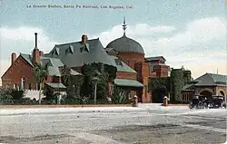 La Grande Station, or Sante Fe Station, was the Atchison, Topeka and Santa Fe Railway's main passenger terminal in Los Angeles, California from 1893 until the opening of Union Station in 1939. The station was located at 2nd Street and Santa Fe Avenue on the west bank of the Los Angeles River, just south of the First Street viaduct built in 1929.[1]