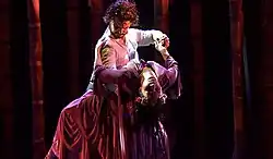 Now free of the time constraints of the 2012 performance, the ballet freely delved into the origin of the curse, the volatile relationship between the Sorceress and the villagers, the village's revenge and the death of the sorceress's son, the naive Adrian, whose death gave rise to the curse. In this staging of La Luna Roja, Estrada took another step away from the traditional fairy tale ending. The play remains similar at heart to the first iteration, but the curse is more poignant. It looks at darker themes such as betrayal and suicide. It biggest departure from the first ballet though was the finale. There is not happy ending waiting for Jamil, no new love to wash away his first loss. Instead of the typical fairytale ending where the hero and heroine come out unscathed, Jamil is forced to contend with the loss of Alba, dancing with nothing more than her memories.[1] The ending to the 2017 ballet is bittersweet, without the comfort of the happy ending of the first staging.
