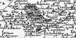 The fortresses were built to take advantage of the heights, from which the occupants could overlook the valley and control access from the north via the main road leading to Bléré/Sainte-Maure and via Champigny-sur-Veude and Rivière to Chinon.[2] There were no fewer than nine other former aristocratic residences in the area:[3] La Mabilière, La Girardière, La Croix-Morin, Le Puits-Morin, Beaumené,[4] Preugny,[5] the Château de Courcoué, La Robinière, the Château de Boisé, and La Messardière.