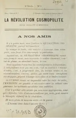 - ^ a b c Bianco, René Louis (1941-2005). "Bianco (Bi 1880). La Révolution cosmopolite : journal révolutionnaire socialiste indépendant". bianco.ficedl.info (in French). Archived from the original on 2024-07-21. Retrieved 2025-06-07.