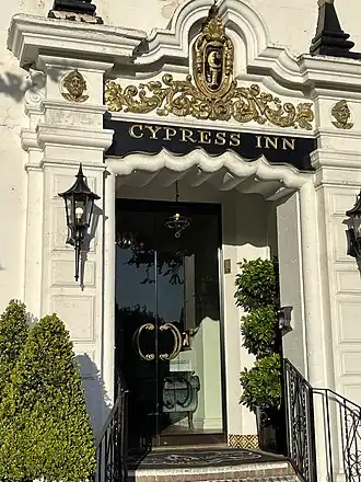 La Ribera kept its original name until the 1960s when new management renamed it the Cypress West hotel. In the mid-1980s, businessman Denny LeVett and actress Doris Day restored the hotel and reopened it as the Cypress Inn.[6] It was an early pet–friendly hotel[7] and was featured on March 15, 1999, in the Architectural Digest.[8][9]