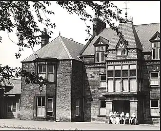 ![]() The school in 1964 with a group of nuns sitting in front of the entrance | |