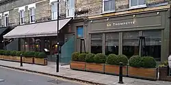 La Trompette is a restaurant located in Chiswick, London, opened by co-owners Nigel Platts-Martin and Chez Bruce's chef patron Bruce Poole. Since 2008, the restaurant has held one star in the Michelin Guide.[1][2] La Trompette was awarded a Michelin Star in 2008 under the leadership of James Bennington. The restaurant was closed in January 2013 for wider building expansion. Rob Weston, after sixteen years as the head chef of The Square under chef patron Phil Howard, replaced Anthony Boyd as Head Chef amid reopening in late February 2013.[3]